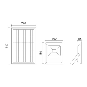 Στεγανό IP 65 | Υλικό: Αλουμίνιο | Χρώμα: Γκρι 8 ώρες φόρτισης* 6-9 ώρες λειτουργίας* Li-ion Μπαταρία Panel Polycrystalline 160°