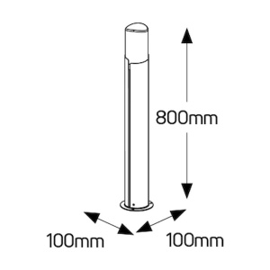 Μέγιστο ρεύμα 16W Συσκευασία 1/6τμχ. Χρώμα Ανθρακί Βάση E27 Βαθμός Στεγανότητας IP54 Εγγύηση 2 Χρόνια Διαστάσεις 100x100x800mm
