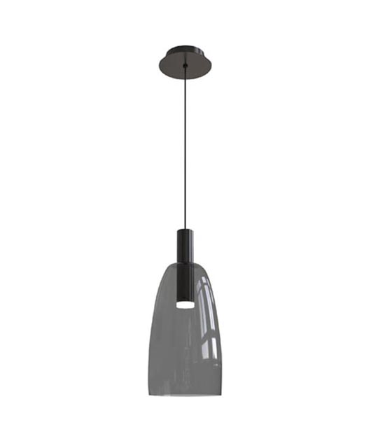 Kρεμαστό φωτιστικό με ενσωματωμένο cob led με γυαλί σε φιμέ χρώμα και μαύρη ράβδο από αλουμίνιο.