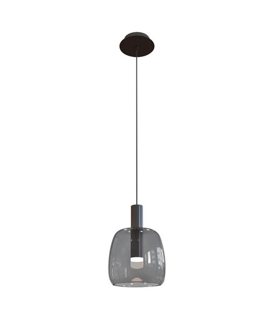 Kρεμαστό φωτιστικό με ενσωματωμένο cob led σε φιμέ χρώμα και μαύρη ράβδο από αλουμίνιο.