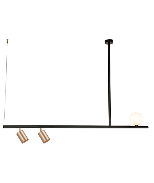 Κρεμαστό τρίφωτο φωτιστικό κατασκευασμένο από μέταλλο και λευκό οπάλ γυαλί,