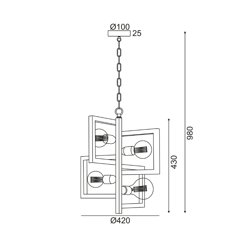 ΚΡΕΜΑΣΤΟ 4ΧΕ27 ΜΑΥΡΟ ΜΕΤΑΛΛΙΚΟ Φ42ΧΗ98CM SIRIUS