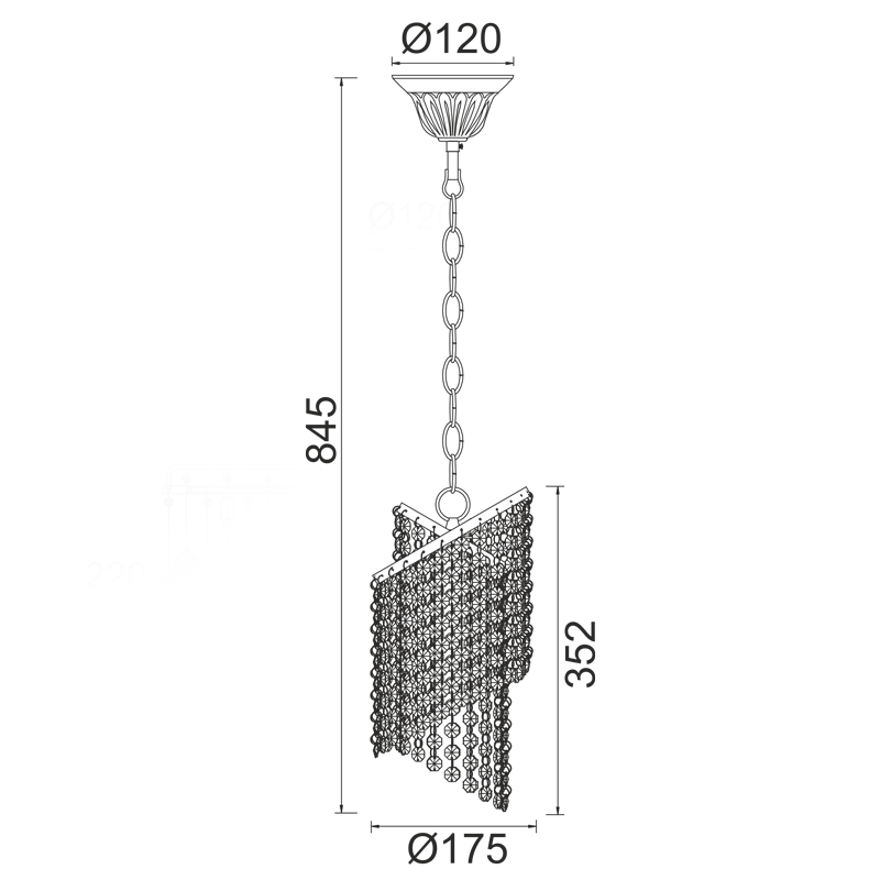 ΚΡΕΜΑΣΤΟ ΦΩΤΙΣΤΙΚΟ 1ΧΕ27 ΚΡΥΣΤΑΛΛΟ+ΝΙΚΕΛ Φ17,5ΧΗ84,5CM ELIZA