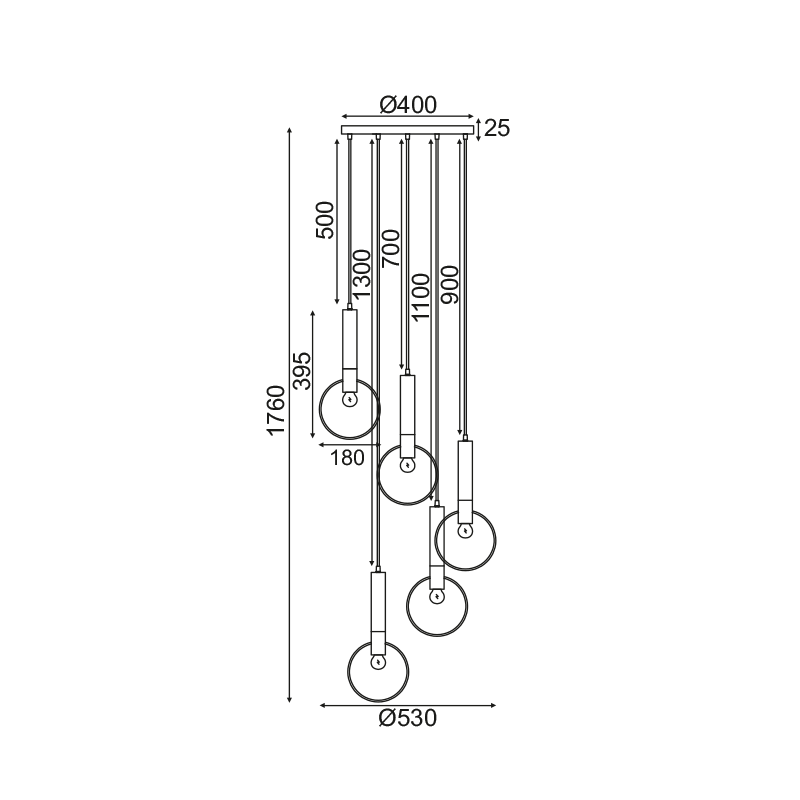 ΚΡΕΜΑΣΤΟ ΦΩΤΙΣΤΙΚΟ 5ΧΕ27 ΟΡΕΙΧΑΛΚΟ/ΜΑΥΡΟ ΜΕΤ/ΚΟ D53ΧΗ176CM MIRACOLO