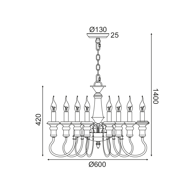 ΚΡΕΜΑΣΤΟ ΦΩΤΙΣΤΙΚΟ 8ΧΕ14 ΑΝΤΙΚΕ/ΣΚΟΥΡΙΑ ΜΕΤΑΛΛΙΚΟ D60XH150CM TOULOUSE