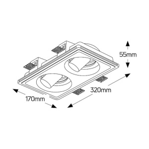 Γύψινο spot ρυθμιζόμενο τετράγωνο 2XGU10 170×170