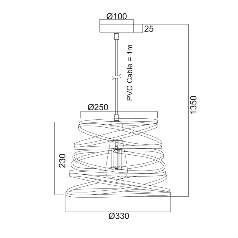 ΜΕΤΑΛΛΙΚΟ ΦΩΤΙΣΤΙΚΟ 1XE27 ΜΑΥΡΟ ΜΑΤ ΣΠΙΡΑΛ Φ25CM JAZZ