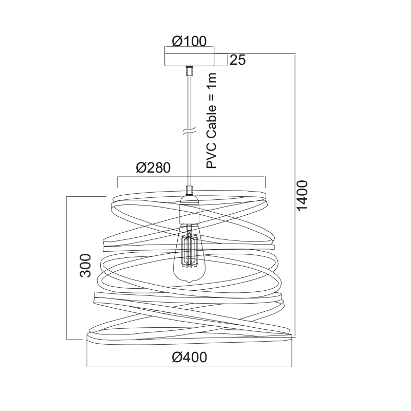 ΜΕΤΑΛΛΙΚΟ ΦΩΤΙΣΤΙΚΟ 1XE27 ΜΑΥΡΟ ΜΑΤ ΣΠΙΡΑΛ Φ40CM JAZZ