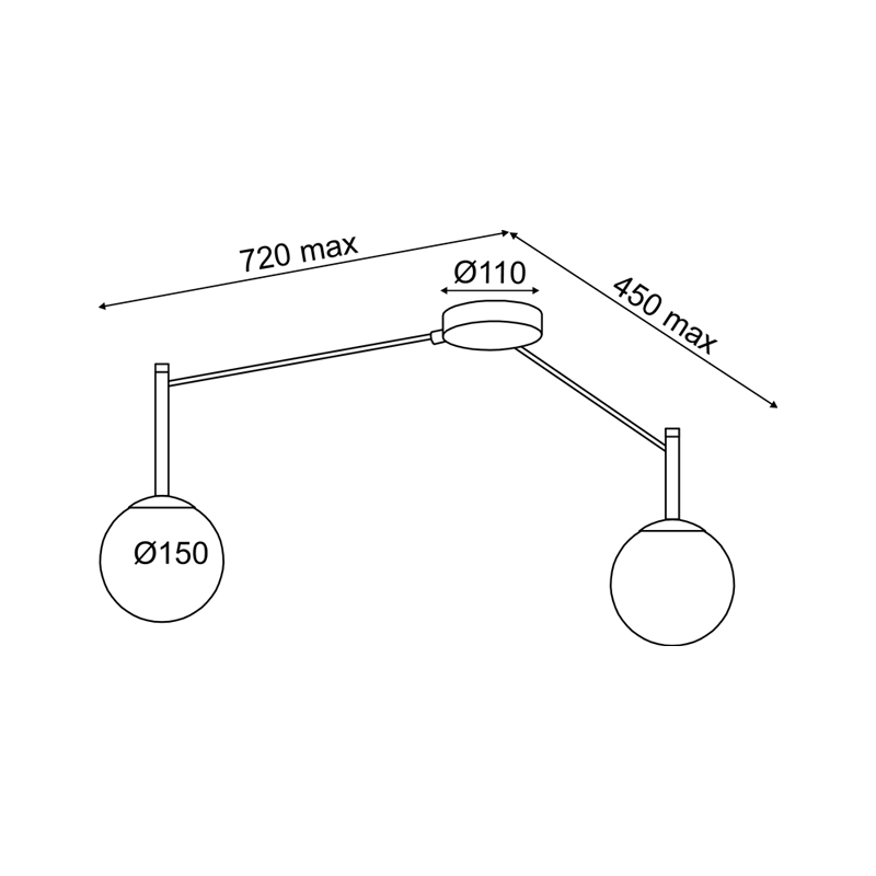 ΟΡΟΦΗΣ Φ/Σ 2xE14 TIRAMOLLA ΜΑΥΡΟ ΜΕΤ/ΚΟ + ΛΕΥΚΟ ΓΥΑΛΙ 72Χ42Χ32CM