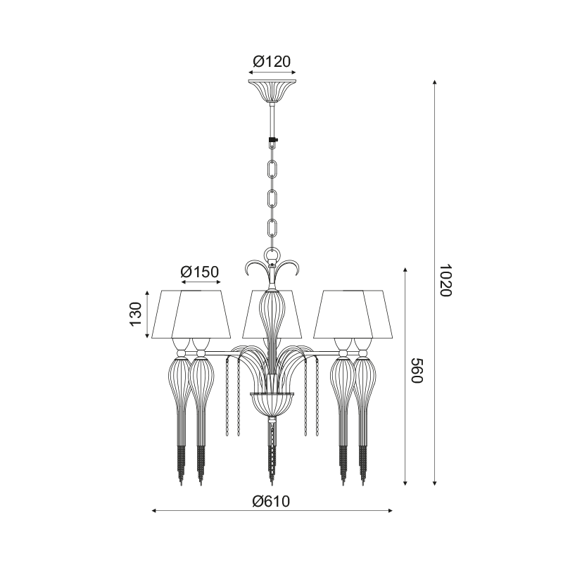 ΚΡΕΜΑΣΤΟ ΦΩΤΙΣΤΙΚΟ 5ΧΕ14 ΜΕΤΑΛ. ΜΑΥΡ+ΑΜΠΑΖ+ΓΥΑΛ+ΑΛΥΣ CHROME Φ61ΧΗ102CM PALERMO